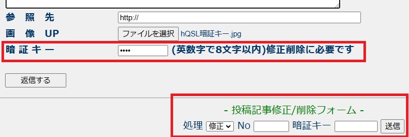 それと蛇足ですが、この下の投稿と前回の投稿では南さんの投稿で返信文のみの投稿が続きましたよね。投稿時に添付画像の赤資格で囲った「暗証キー」を入力してください。今回のような返信文のみのような投稿ミスは削除できますからね。