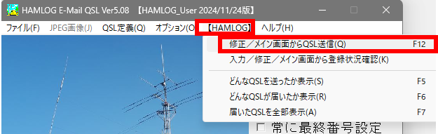 > > 【HamLog】> [修正/メイン画面からQSL送信(Q)] 押下で【プレビュー】後に1枚単位で送信出来ます。