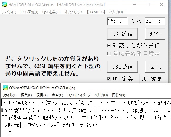 画像を見るとhQSLの編集時に "ファイル" > "QSL定義ファイルを開く(O)" で画像ファイル【hQSL01.jpg】のを開いたような形跡ですね。