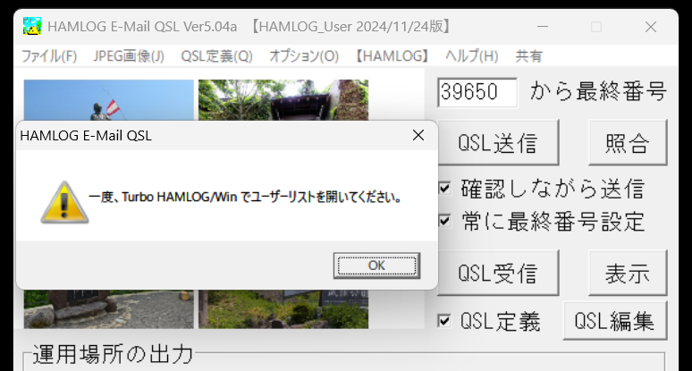 hQSlのバージョン5.08に入れ替え送信しょうとしたところ、「2024/11/14以降のTurbo HAMLOG/win