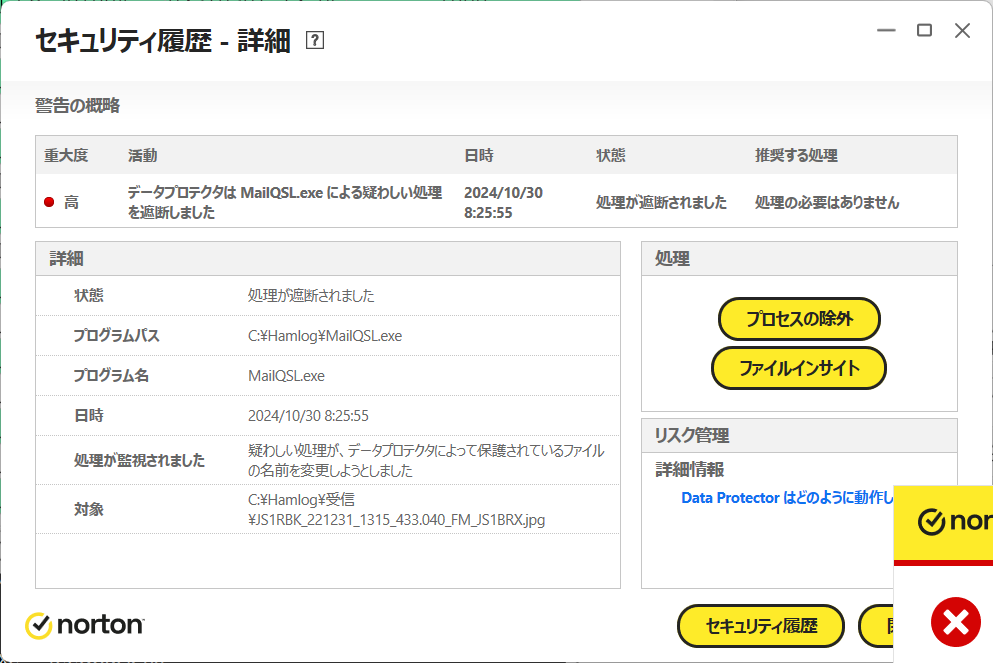 > > 一応Microsoft Defenderの例外設定もしてみました(JH1ZSBのHamlogフォルダーを例外設定。サブフォルダーも含まれる)。