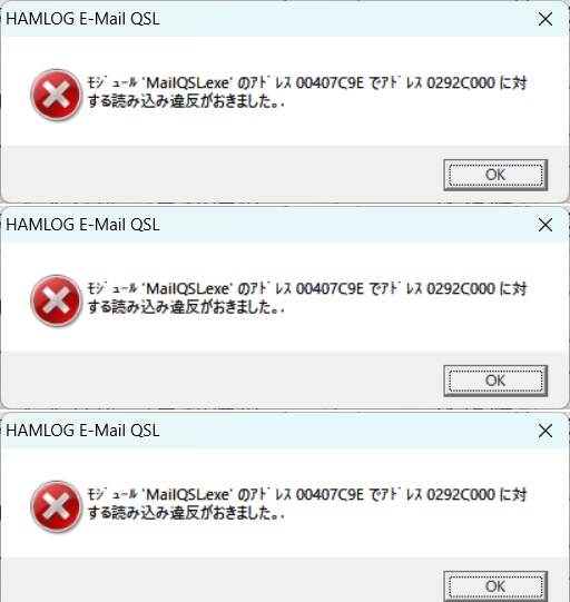 > > HAMLOG E-Mail QSL通信設定→送信/受信確認ボタンを押すとエラーメッセージが出ます