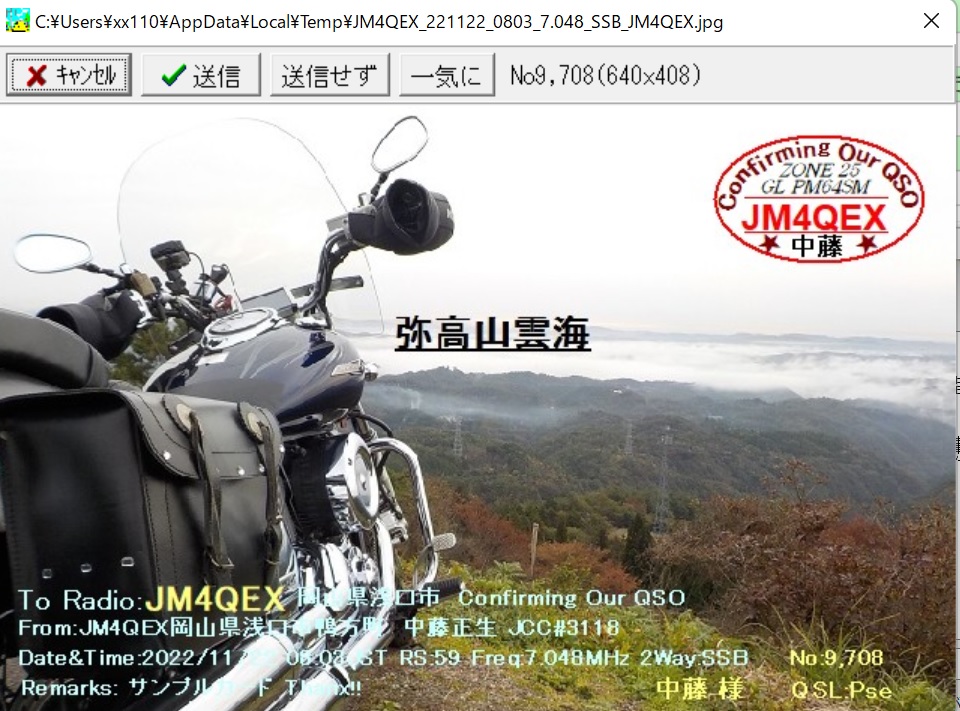 > 画像の体裁で、でっかい? コールサインは控えていましたが、送信カードは無効なのですか??