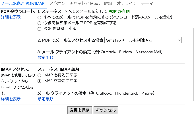 > gnailのpopの設定を再度確認したのでスクショを添付してみます。