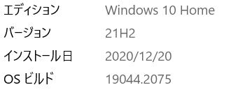 > > エディション Windows 10 Home