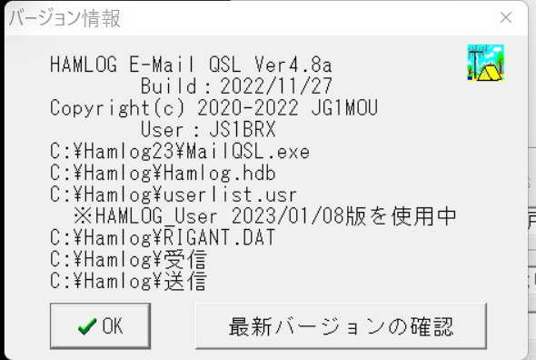 Re: MailQSL.exe の格納場所 投稿者:JG1MOU浜田 投稿日:2023/01/13(Fri) 22:25:13 No.3247