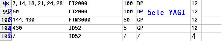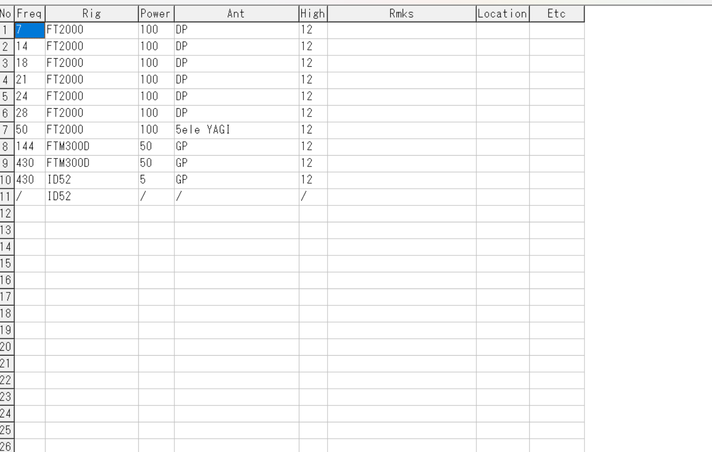 > Rig#とRig=が無ければ、一致する周波数の行のリグ・アンテナ情報。