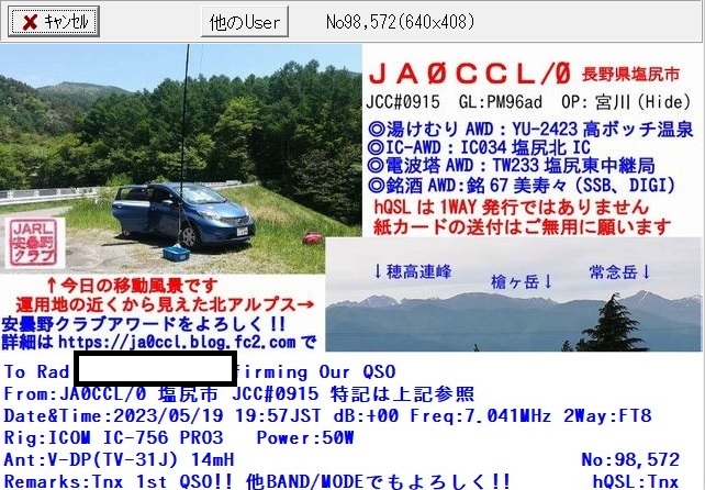 添付画像は私が上記4つのソフトを駆使して(?)作ったhQSLの画像ですが。