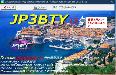 > だだ、通信設定で自己のコールサインをJP3BTY/3に登録すれば(できるかどうか不明ですが)それを行っておいてから、自己のコールサイン表示にチェックを入れれば反映されて