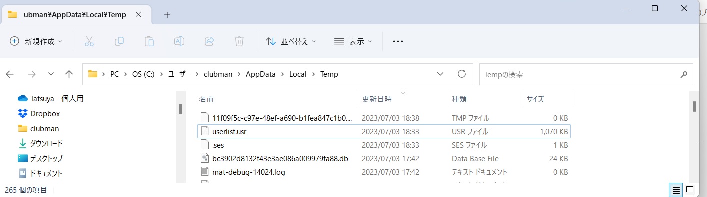TempフォルダC:\Users\clubman\AppData\Local\Tempにアクセスできないのでしょうか、、、