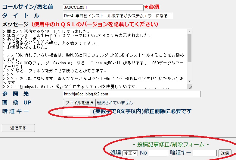 ただし、HAMLOGの相談室で返事があるにもかかわらず質問者が自分の投稿を削除されていましたが、そういうためのものではありませんので念のため。