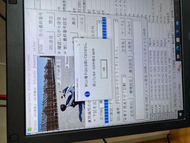 受信は表示でわかりますが、送受信したものはhQSLをインストールしたフォルダ(多分HAMLOGのフォルダだと思いますが)に「受信」「送信」というのがありますからそこで中身を確認できます。