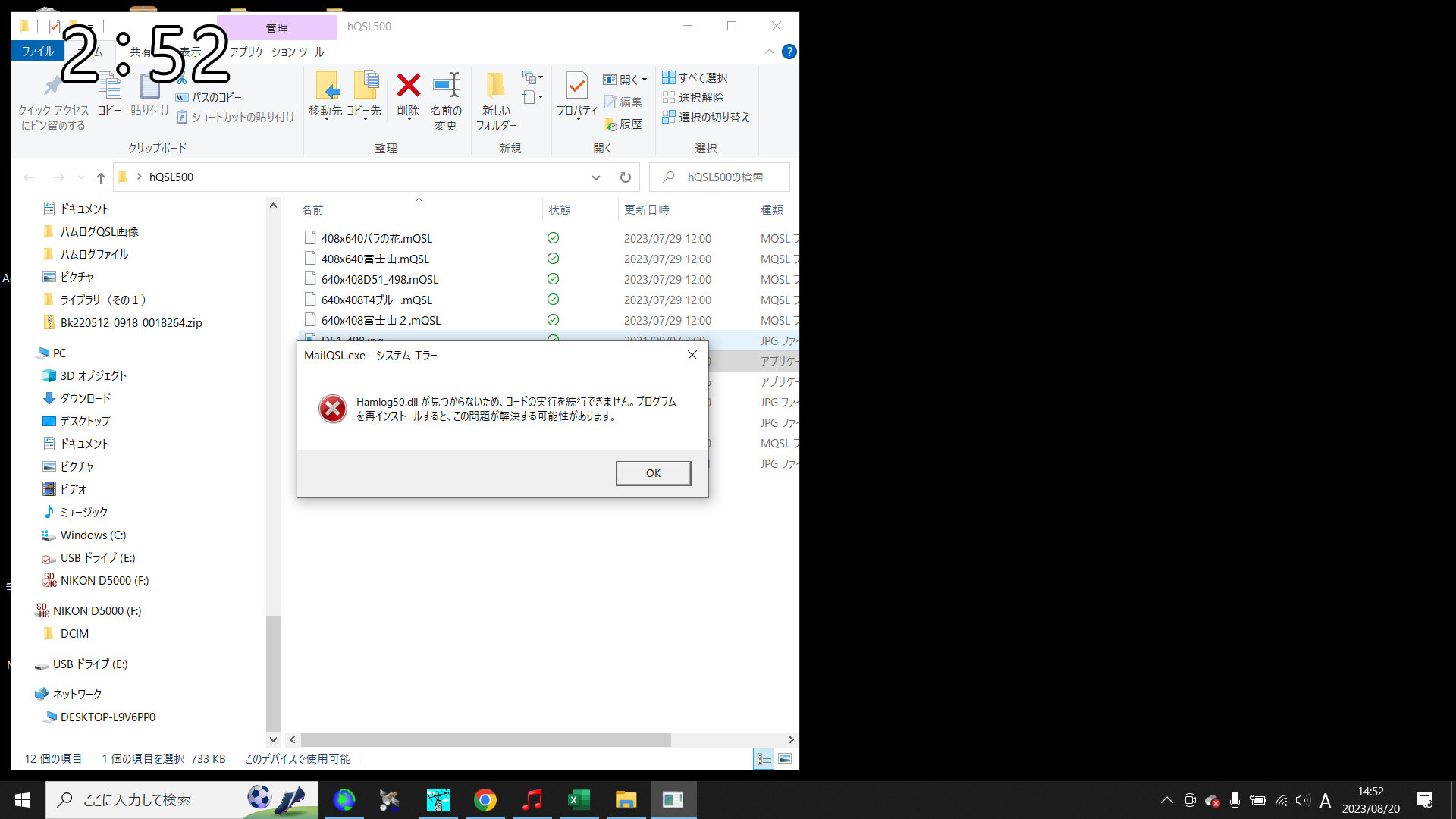 石田さんはHAMLOGのフォルダの中にhQSLもインストールされておられるようですが、長野さんの書かれたようにフォルダを丸ごとUSBメモリーにコピーしてから処理しましょう。
