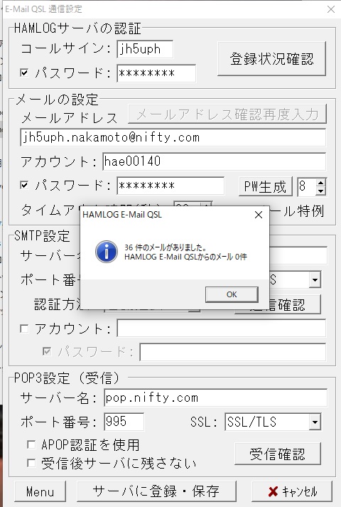 > 受信確認では、以前のhQSLのデータがメールサーバーに残っているようです。
