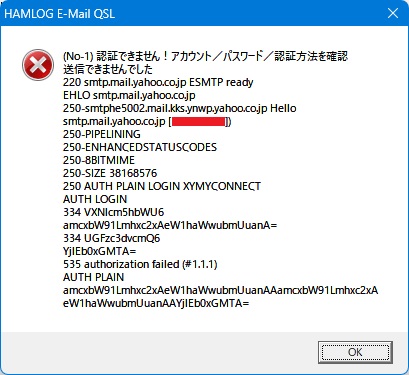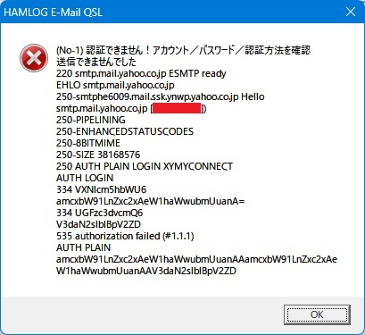 > 3.E-MailQSL通信設定の画面で、考えられるあらゆる組み合わせを実行してみましたが「送信確認」できず。