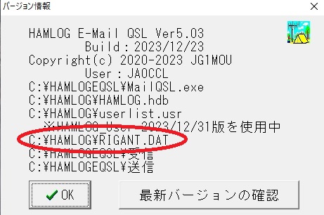 > > hQSLのファイル⇒リグ・アンテナデータを開くで従来からお使いのデータはきちんと指定されていますか。添付画像のようにhQSLのヘルプのバージョンアップでhQSLで使っているRig/Antの場所がわかりますがいかがでしょうか。