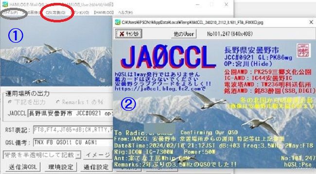 > > QSL定義の画像が出ない ということですがどのような処理をしたときに出なくなったんですか?