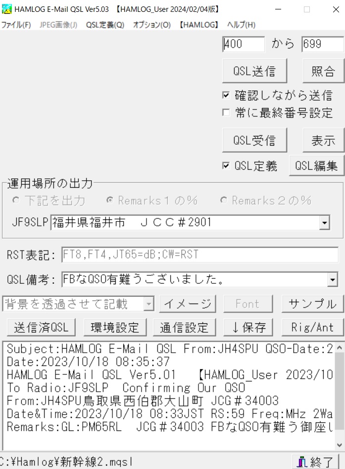 > hQSLの画面(ビギナーモード)では、JPEG画像は出るが、QSL定義の画像が、出るものと出ないものが亜rます。何が原因でしょうか。