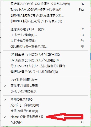 > 照合結果のメニューに[Name, QTH等も表示する]を追加しました。ベータ版です。