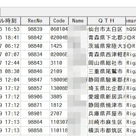 ここにレ点を入れて再起動させると、交信データのCode, Name, QTH, Remarksを表示します。