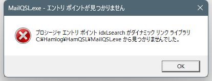 > > hQSL505exeが添付画像のエラーが出て起動できません?