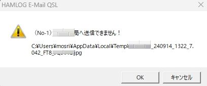 お世話になります。hQSL Ver5.06使用最近、QSL送信ボタンクリックで送信エラーメッセージが出てその後、ソフトがフリーズ状態になります。通信設定は正常で送受信テストも正常動作です・・・アドバイスをお願い致します。