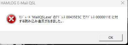 > (モジュールMailQSL.exeのアドレスXXXXXアドレスでXXXXXに対する読み込み違反が起こった)