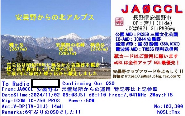 こういう局もいるんだということを頭の片隅に入れておいていただいて、hQSLを作成されるときにちょっと思い出していただければありがたいですね。