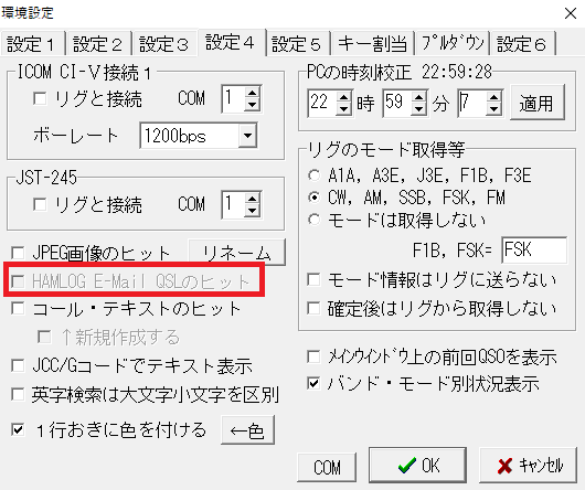 ちなみに当方、「HAMLOG E-Mail QSLのヒット」はチェックを外しています