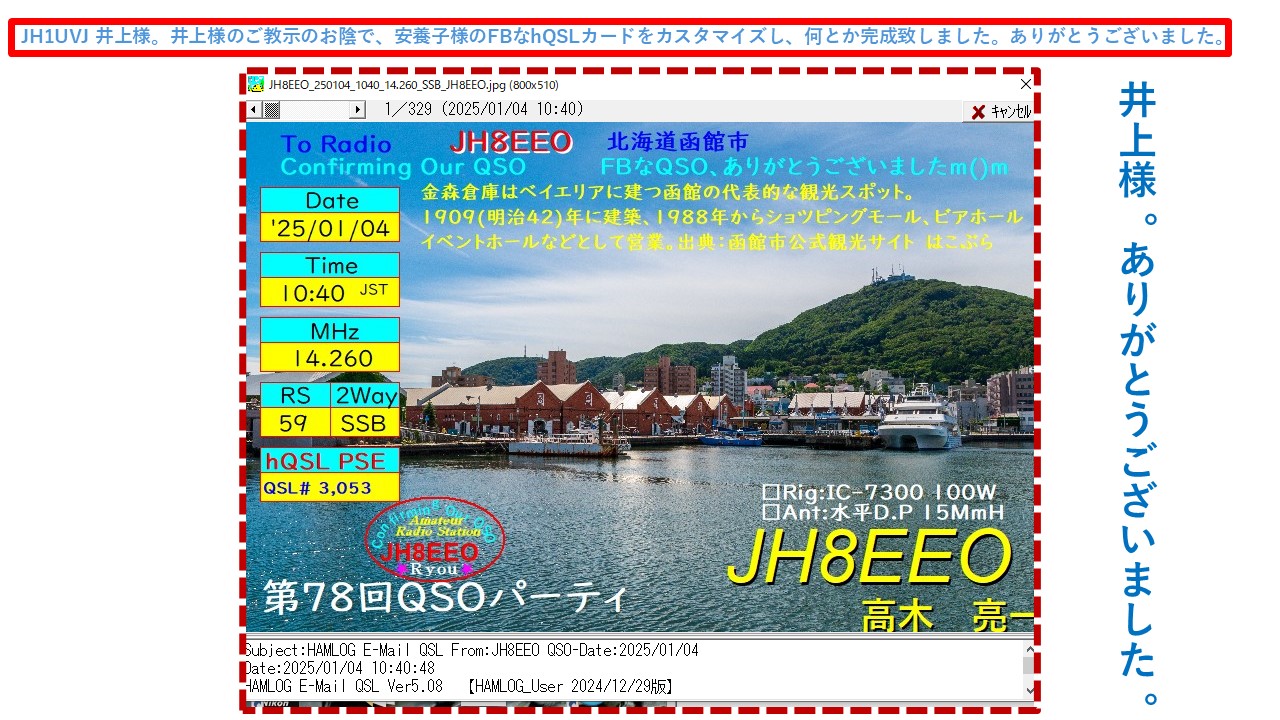 無事完成されたようで良かったです。FBハムライフを!!