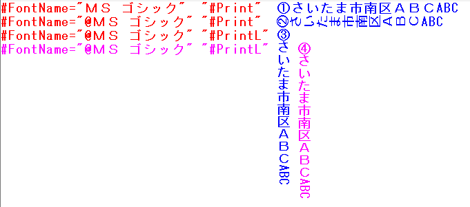 > #PrintL 10, 10, 90, "さいたま市南区" としても "さいたま市南区" を 90度の角度で回転させるだけです。