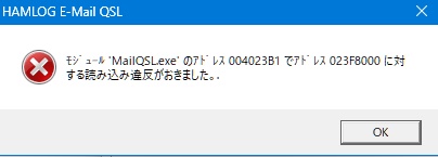 QSL受信途中で、読み込み違反となりQSLの受信ができません。