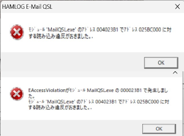 > > 受信動作で、添付画像のエラーが出ます。