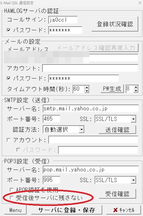 > > > h−QSLの通信設定の中の一番下に、「受信後にサーバーに残さない」にレ点がはいっていませんか?