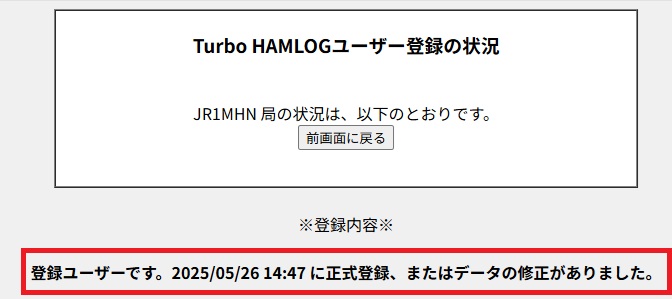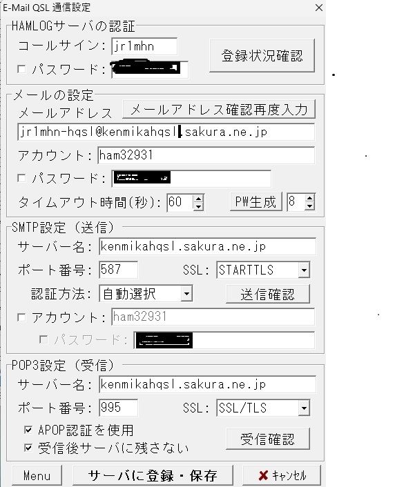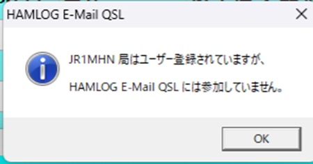 > > E-MailQSL通信設定 サーバ認証で正式登録は5/26 14:47登録済みと出ます。