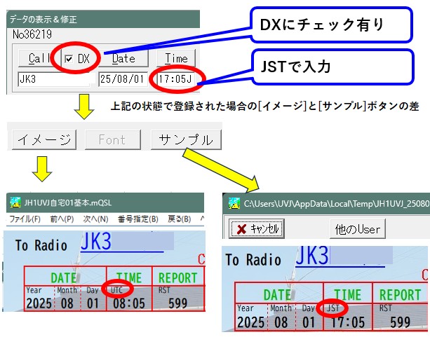 > > 通常国内交信は自動で「JST」で登録、DX局は「UTC」で登録されます。