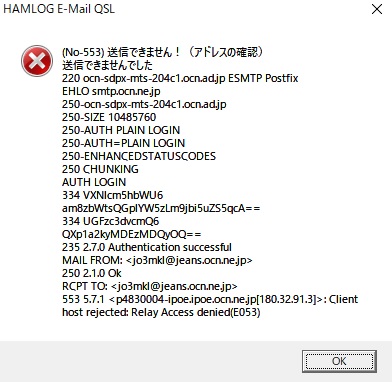 送信ボタンを押すと、(No-553)○○○○○○局へ送信できません!