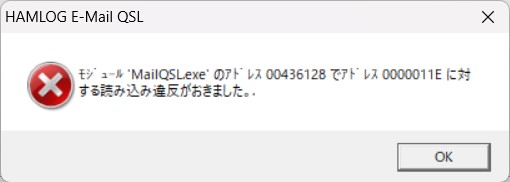 hQSLユーザとの交信でhQSLを送信した後HAMLOGを終了(同時にhQSLも終了)したときに発生します。