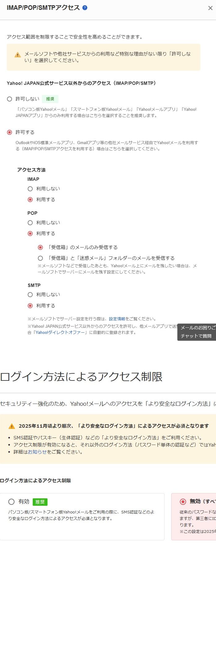 Yahooメールサーバー smtp.mail.yahoo.co.jp