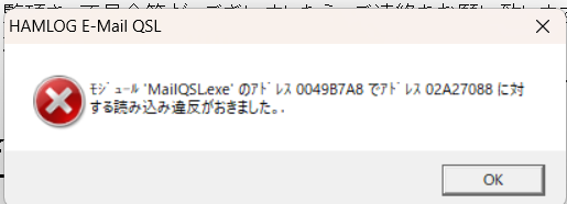 > > hQSLの終了時に画像のようなメッセージが表示されます。