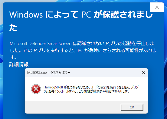 エラーメッセージのとおりです。HAMLOG50.DLLをコピーしてください。