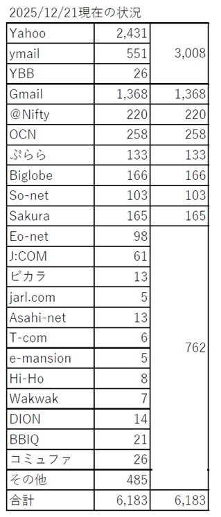 > hQSLユーザーの半数がソフトバンク系のメールサーバーを利用されているんですね。