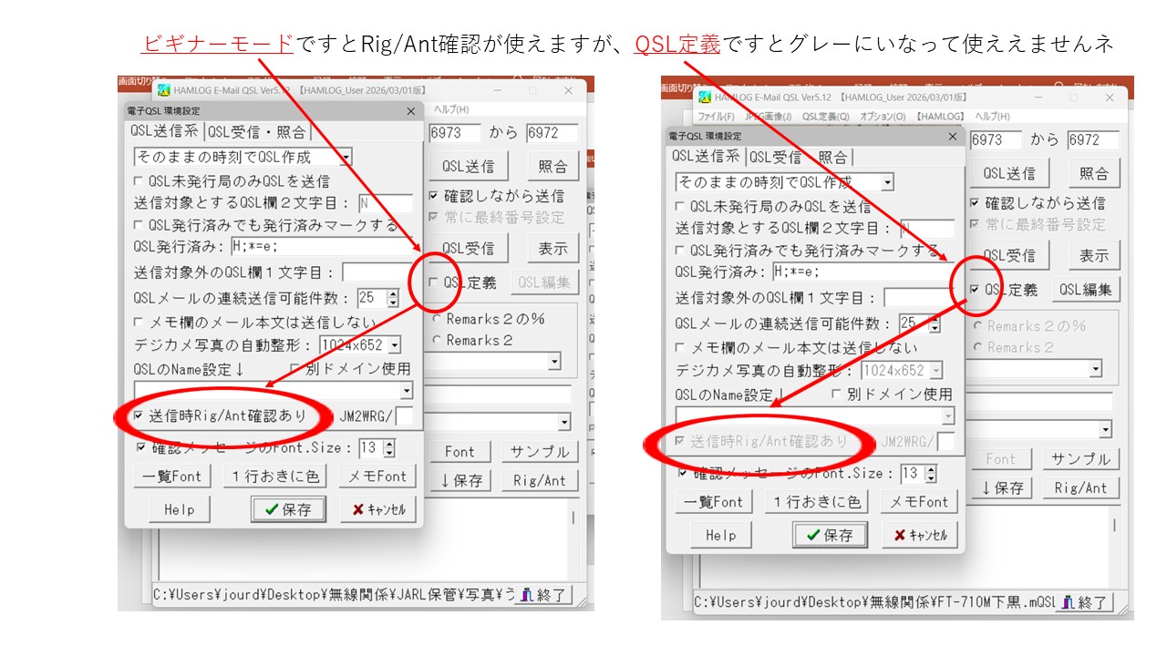 > > win版のQSL印刷時は、都度Rigを選んで印刷できたのですが・・。