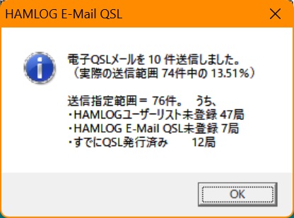 > > ・HAMLOG E-Mail QSL未登録 64局