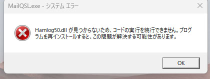 > Hamlog 50dllが見つからないとの表示が出てHQSLが起動できない。