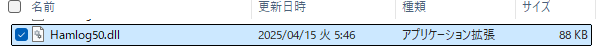 ちなみに「HamLog50.DLL」の最新版は[Apr 15 2025]です。